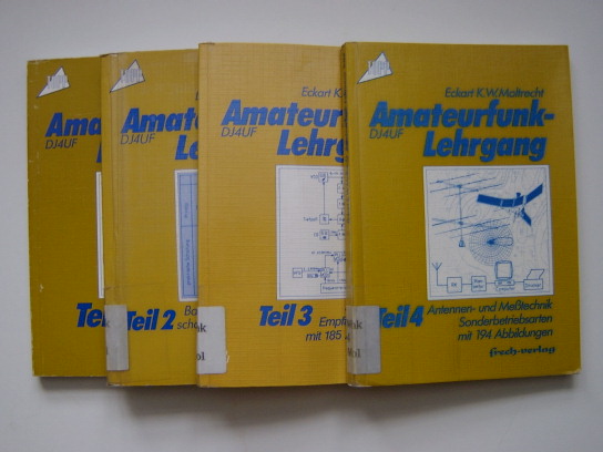 erahnen kann. Lektüre zur Ausbildung im AmateurfunkAmateurfunk ist ein technisches Hobby, ein Funkamateur versteht und beherscht die Technik, die er benutzt. Also lautet der Beschluss, dass der Mensch was lernen muss! Das ist harte Arbeit, für die folgende Titel empfohlen seien:DARC-Ausbildungsunterlage , für den Ausbilder mit vielen Folienvorlagen. Für Ausbilder ein Muss, sie erspart viel Arbeit. Der Fernlehrgang aus dem Norden, zwei dicke Ordner. Diesen Lehrgang gibt es immer noch, aber auch mit einem älteren lässt sich ein Fundament erarbeiten. Eine Anschaffung, die lohnt! Ältere Bücher von DJ4UF. Mehr Substanz als die neuen Werke, die sich leider sklavisch am Fragenkatalog orientieren, Begreifen und Verstehen sind Nebensache. Der Einfluss des Verlages ist spürbar. Am besten ist der Lehrgang, der in der QRV abgedruckt wurde. Damit lassen sich auch heute noch die elektrotechnischen und radiotechnischen Grundlagen erarbeiten. DAS Buch für die Ausbildung des Funkamateurs gibt es noch nicht. Wundert sich jemand, dass der berühmte Katalog der BNA mit Fragen und Antworten nicht auftaucht? Der ist nicht zum Lernen gedacht! Seine Lektüre fördert weder das Verstehen noch das Begreifen. Wer den Fernlehrgang oder den von DJ4UF durchgearbeitet hat und danach den Fragenkatalog zur Hand nimmt wird erstaunt feststellen, dass er bei sehr vielen Fragen schon weiß, warum diese Antwort richtig ist und die anderen falsch sind und wie viele redundante Fragen vorhanden sind. RadiobastelbücherBitte sehr: Vorschläge für Bastelaktionen aller ArtBastelbuch 1 --- Bastelbuch 5 --- Bastelbuch 9 Bastelbuch 2 --- Bastelbuch 6 Bastelbuch 3 --- Bastelbuch 7 Bastelbuch 4 --- Bastelbuch 8 Aus dem Buchregal des FunkamateursHandbuch des BCC , viele praktische Tipps für jeden Funkamateur. Aus der Feder von DF8ZH(sk) . Einfach nur schöne Bücher Werkbuch Hochfrequenztechnik , zeitloser Inhalt.Die Mathematik für Funktechniker , einfach toll!